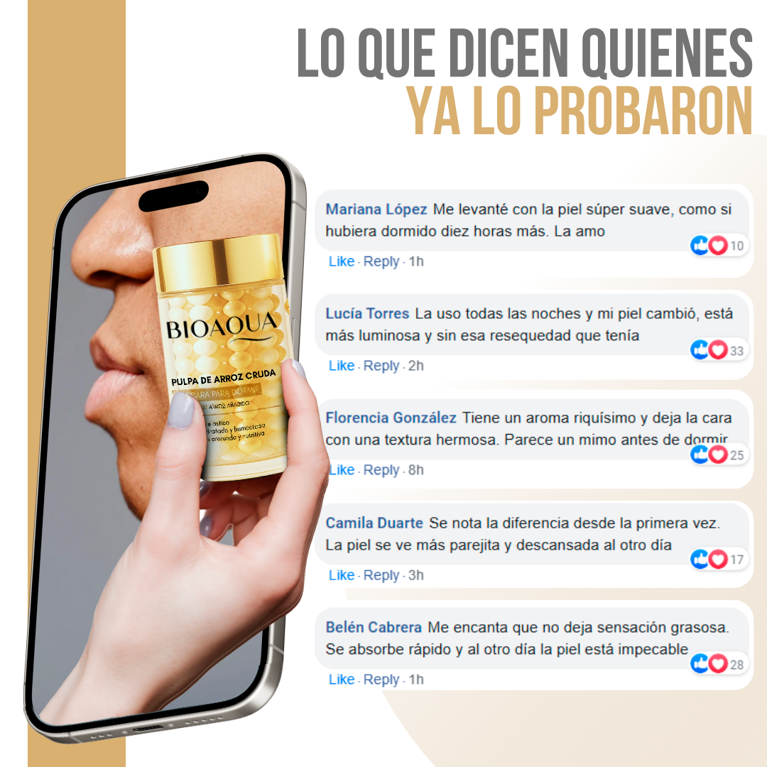 Quienes ya incorporaron BIOAQUA™ a su rutina nocturna destacan su capacidad para hidratar, suavizar y aclarar visiblemente la piel desde la primera aplicación. Notan menos manchas, mayor uniformidad y un brillo saludable que mejora con el uso constante. Su fórmula sin enjuague y su delicado aroma la convierten en el último paso ideal antes de dormir. Una mascarilla inteligente que trabaja por tu belleza mientras descansás.