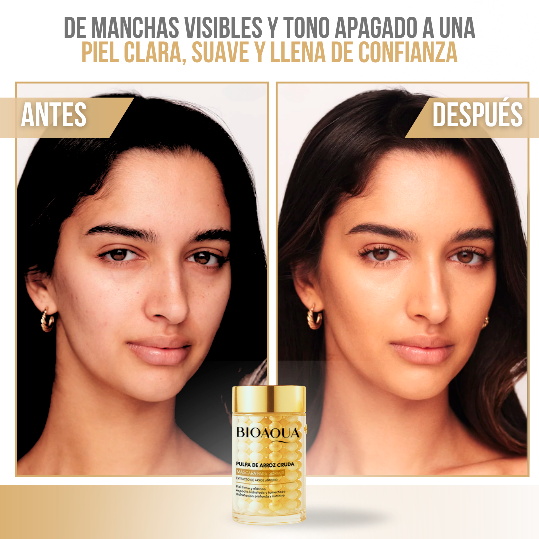 BIOAQUA™ no solo hidrata intensamente, sino que también ayuda a eliminar manchas y emparejar el tono del rostro. Los nutrientes naturales del arroz actúan como iluminadores suaves que reducen la apariencia de manchas oscuras, marcas y zonas opacas, revelando una piel más uniforme y radiante.