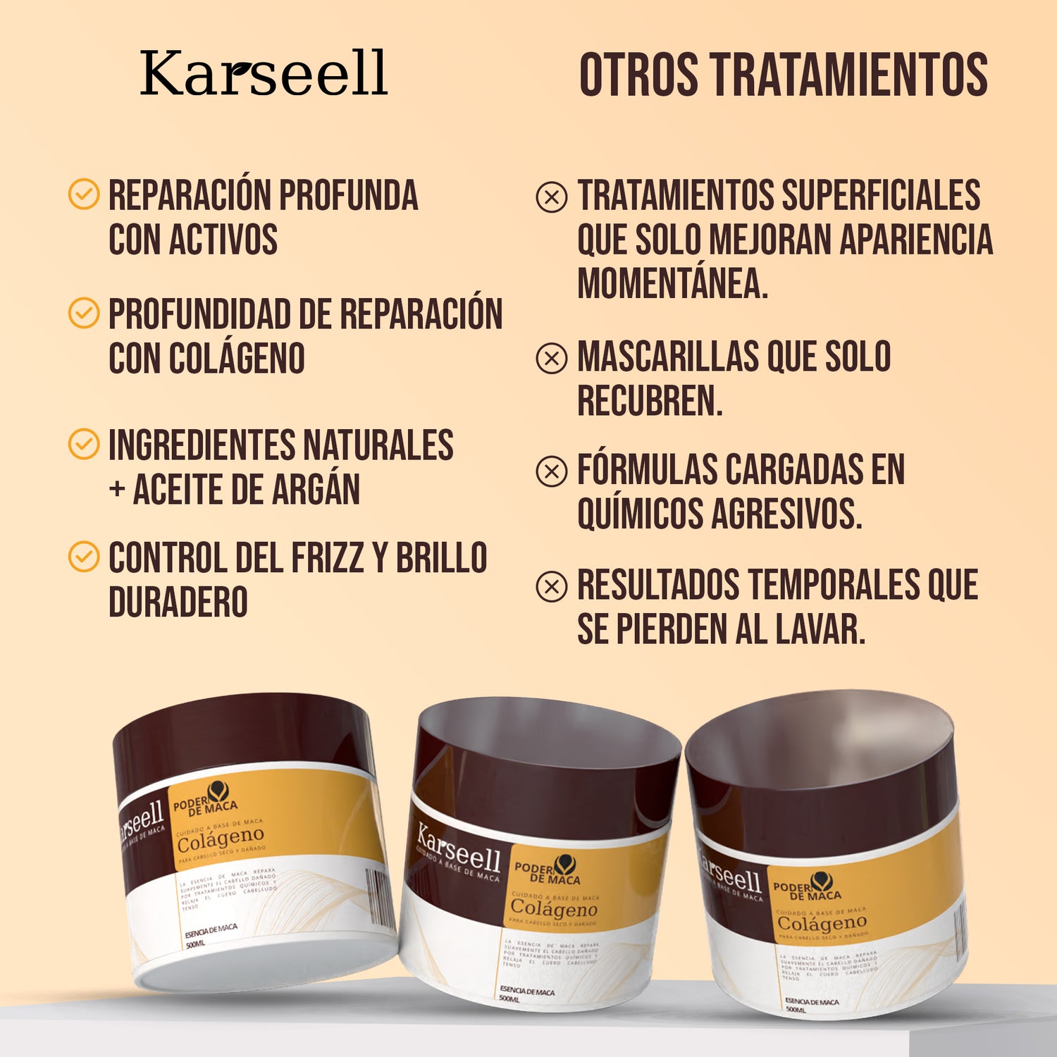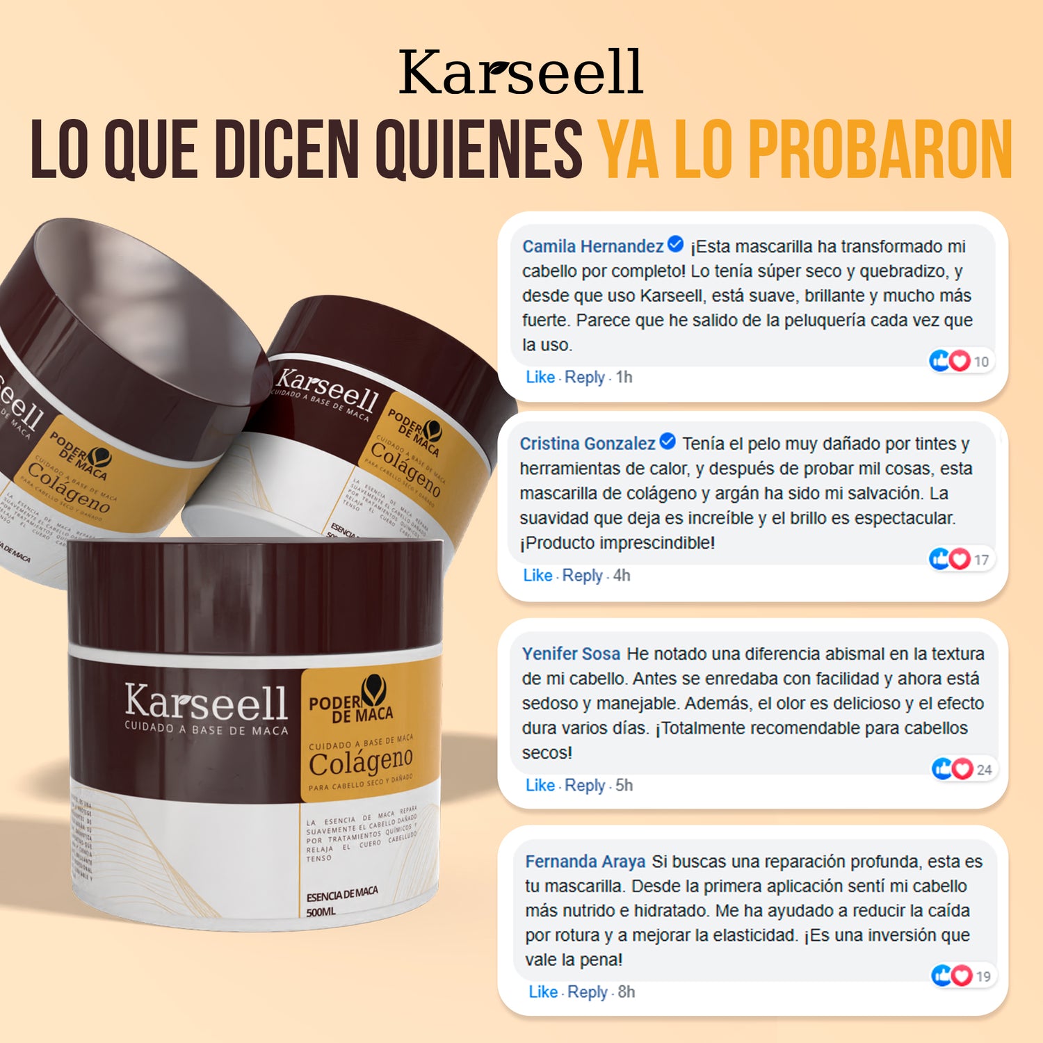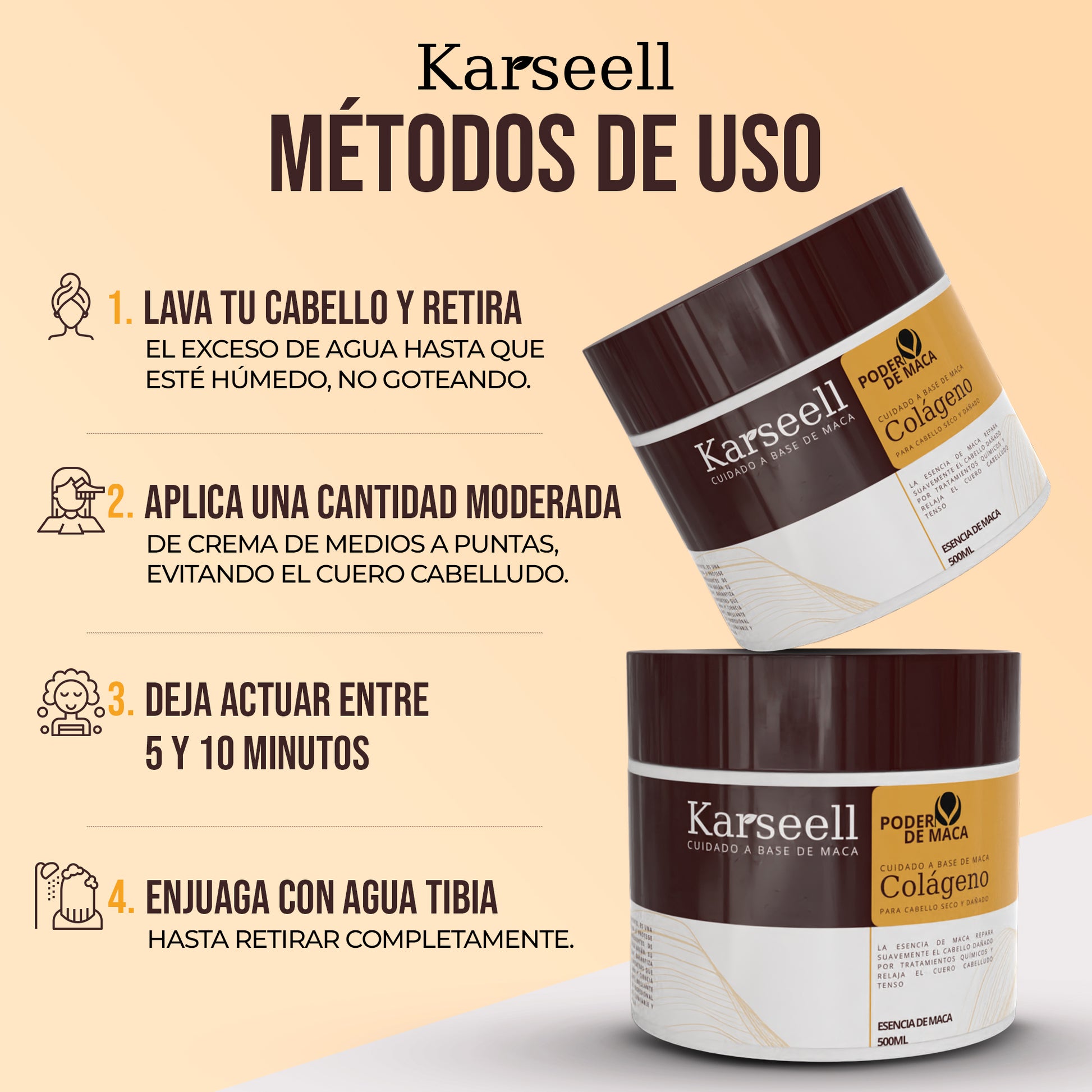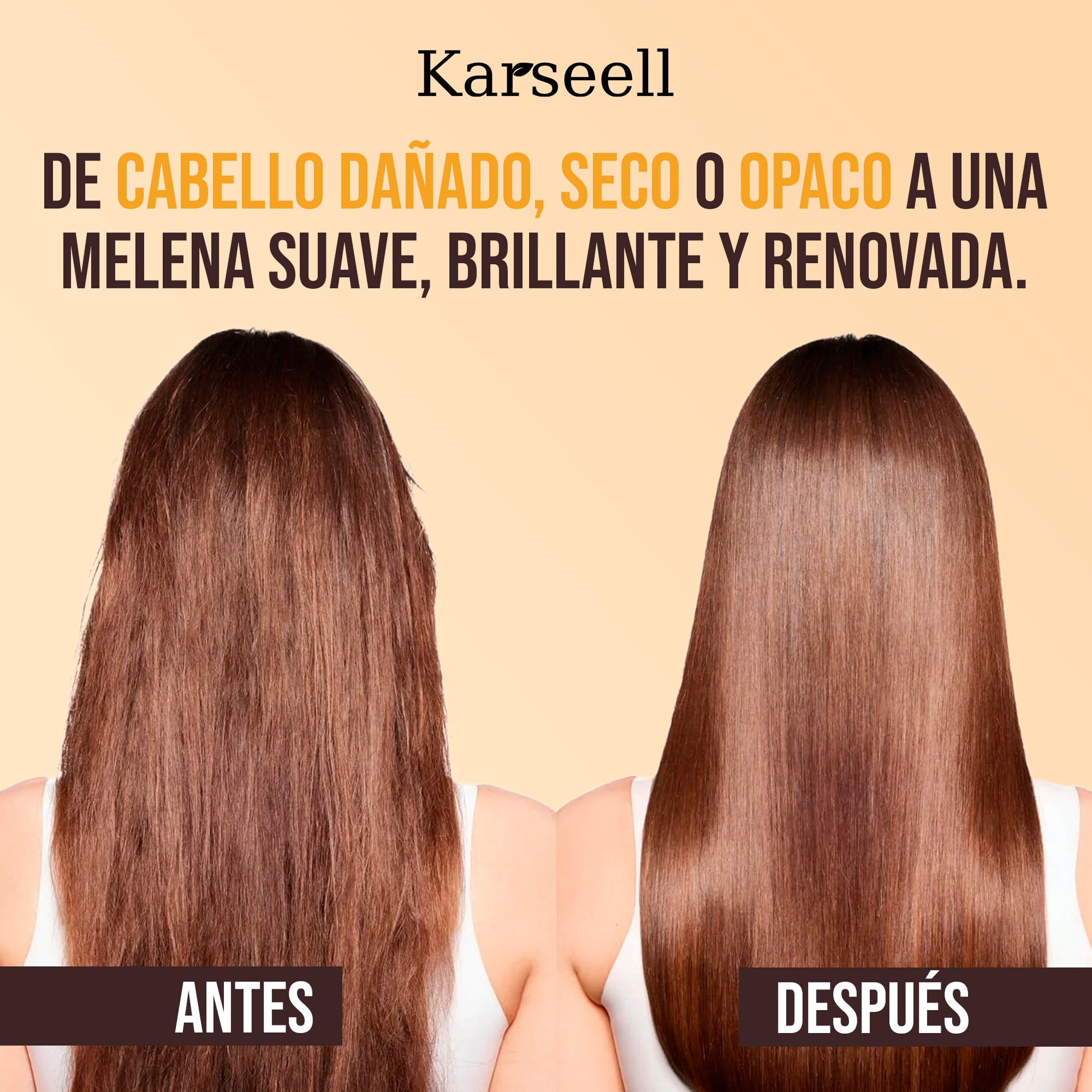 Además, Karseell™ está libre de sulfatos, parabenos y siliconas pesadas, lo que garantiza un tratamiento saludable y respetuoso tanto con el cuero cabelludo como con el medio ambiente. Su fragancia suave y duradera convierte cada aplicación en una experiencia sensorial de spa en casa.