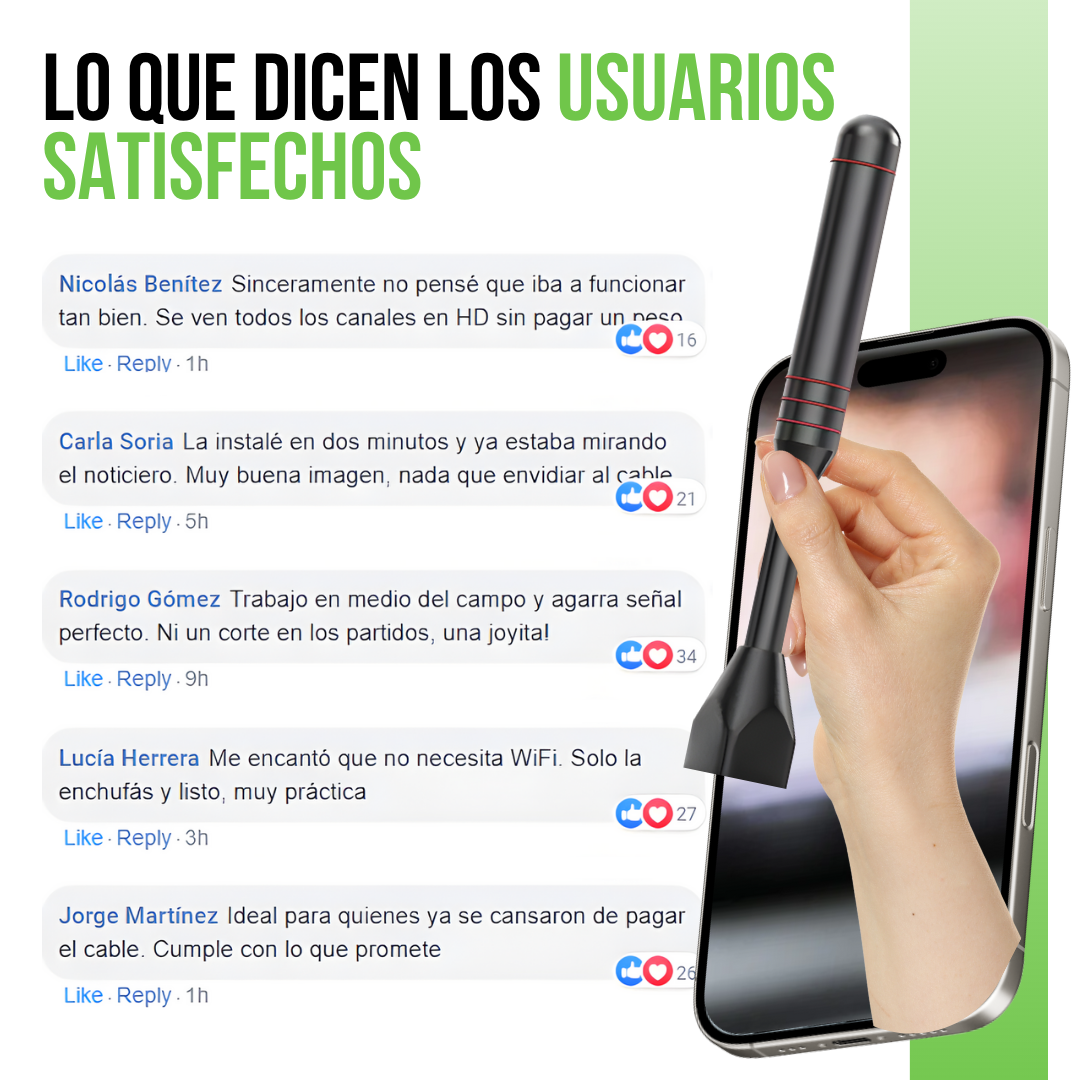Ideal para quienes buscan una alternativa económica al cable o las plataformas de streaming. Con solo conectarla, ya podés ver tus noticieros, series y eventos deportivos favoritos con una claridad de imagen impresionante y sin cortes.